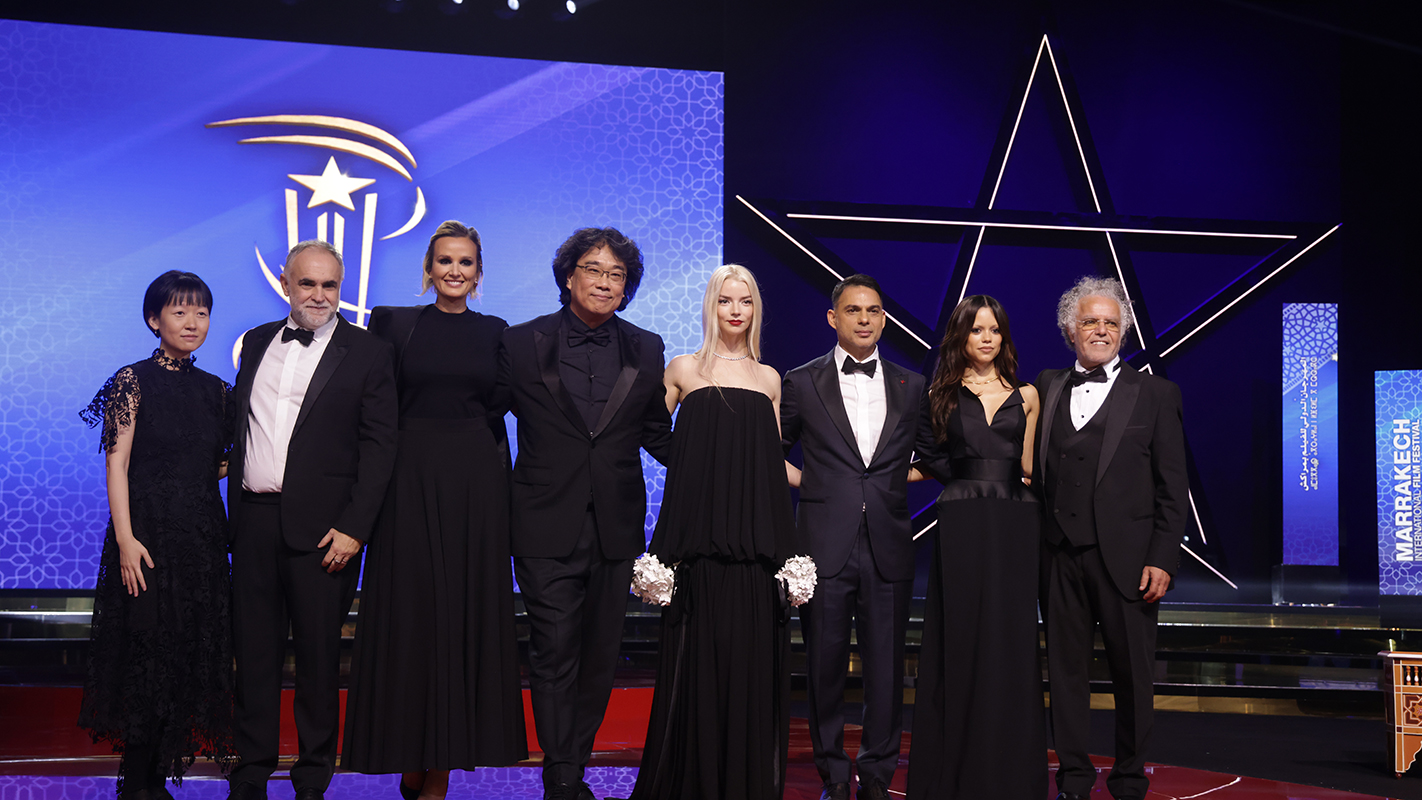 Dans une ambiance vibrante et conviviale, le public a accueilli chaleureusement le président du Jury de la compétition officielle de cette 22e édition, le réalisateur coréen Bong Joon Ho, ainsi que les membres du Jury, à savoir le réalisateur, scénariste et artiste visuel brésilien et algérien, Karim Aïnouz, le réalisateur marocain Hakim Belabbes, la réalisatrice et scénariste française Julia Ducournau, l’acteur et cinéaste iranien, Payman Maadi, la jeune actrice américaine Jenna Ortega, la scénariste et réalisatrice canadienne, Celine Song et l’actrice anglo-argentine Anya Taylor-Joy.