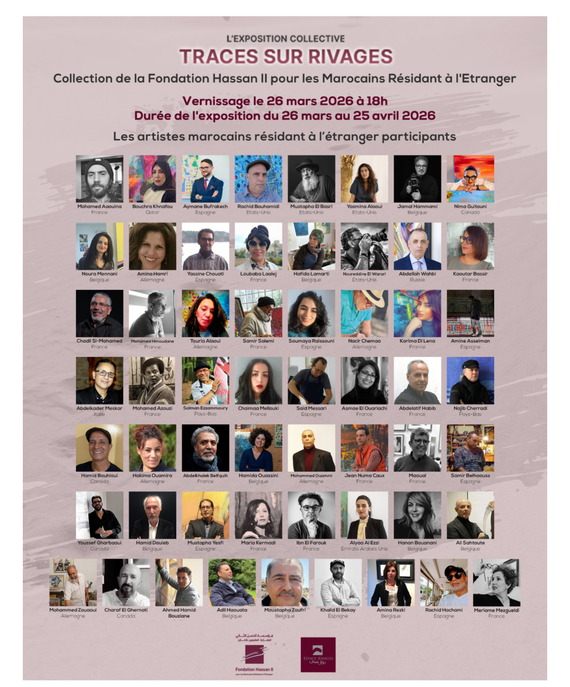 Pour célébrer le 10e anniversaire de l’Espace Rivages, la Fondation Hassan II pour les Marocains Résidant à l’Etranger organise l’exposition collective « Traces sur Rivages » du 26 mars au 25 avril 2026. Le vernissage  qui aura lieu le jeudi 26 mars 2026 à 18H à l’Espace Rivages, réunira plusieurs artistes ayant exposé à l’Espace.