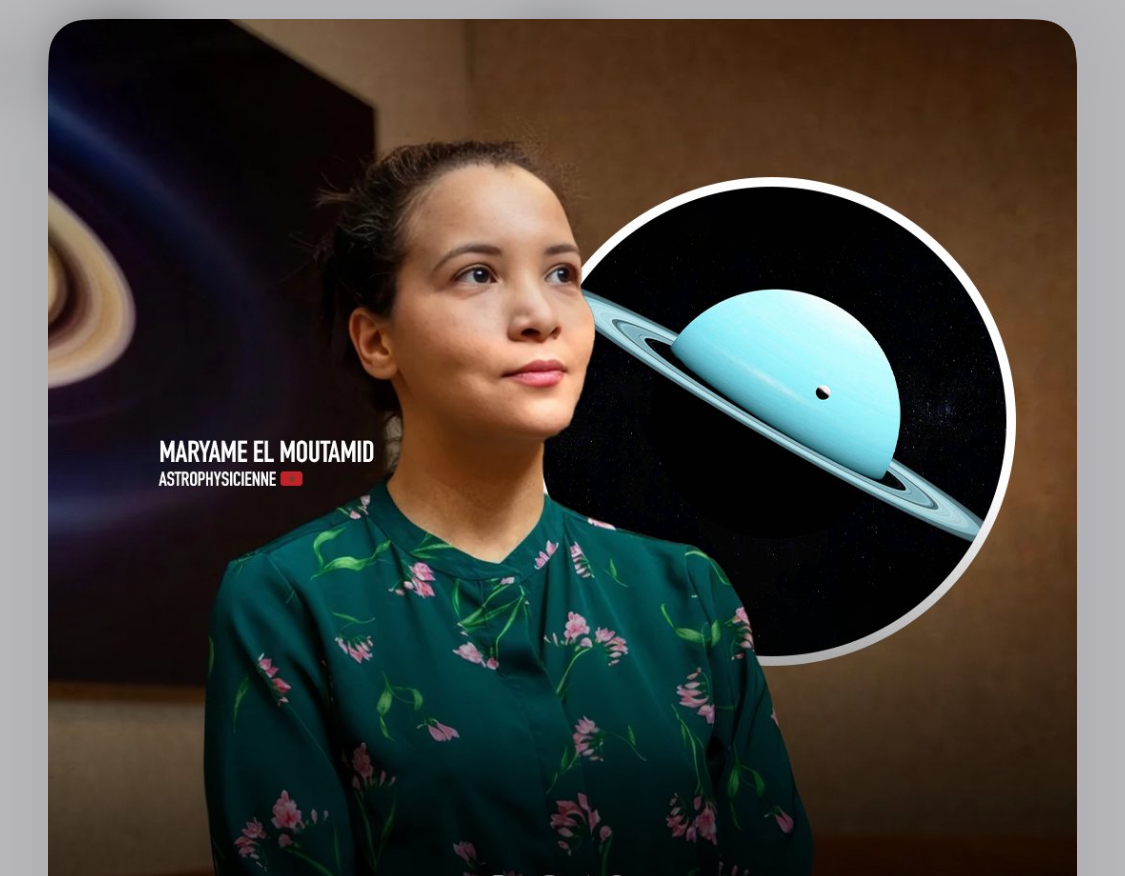 Native d’Essaouira, Maryame El Moutamid a suivi sa scolarité au Maroc avant de poursuivre un doctorat en France, puis un post-doctorat à l’université Cornell (États-Unis). Aujourd’hui scientifique principale au SwRI et responsable d’un programme d’observation d’Uranus avec le JWST, elle souligne que la forte inclinaison de l’axe de rotation de la « planète couchée » facilite l’étude de ses anneaux et de ses satellites.