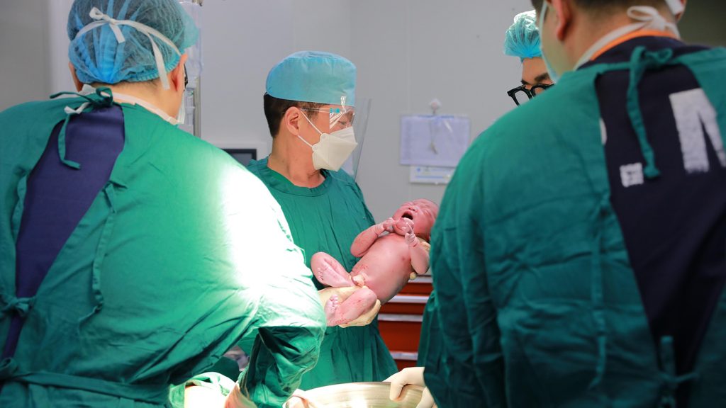 Après la naissance de l’enfant, la dernière étape est la délivrance, l’expulsion du placenta. De nouvelles contractions apparaissent pour décoller le placenta de l’utérus. Cette phase nécessite une parfaite surveillance car parfois des complications peuvent survenir, avec un risque d’une forte et brutale hémorragie. La surveillance de l’état général de la maman se poursuivra en salle de travail au cours des deux heures suivant l’accouchement pour évaluer correctement le saignement et agir en cas d’anomalie. Tension artérielle, pouls, température, saignements vaginaux sont ainsi surveillés. Ensuite, la maman rejoint sa chambre. Bébé est né. Il est en bonne santé. Félicitations.
